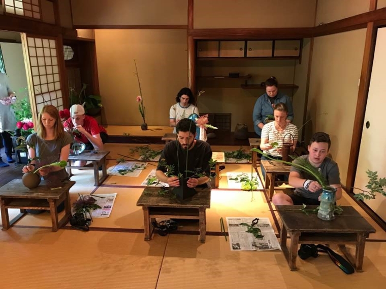 Top Left: My Ikebana creation Top Right: Katagiri Sensi with all of our Ikebana arrangements Bottom: Students working on their Ikebana arrangements with Katagiri Sensei
