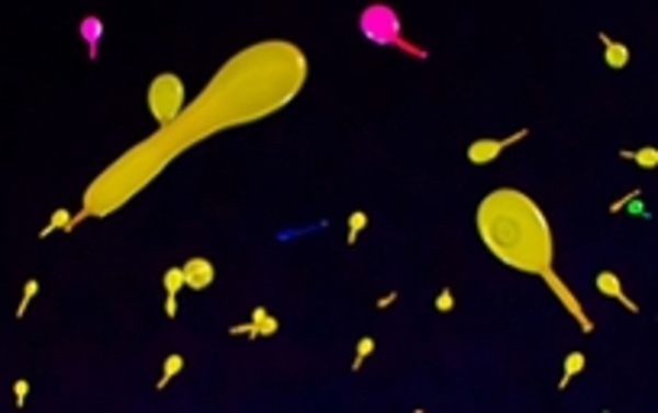 Left: Fans waiting to let go of their ballons Right: Balloons being let go before the start of the 7th inning