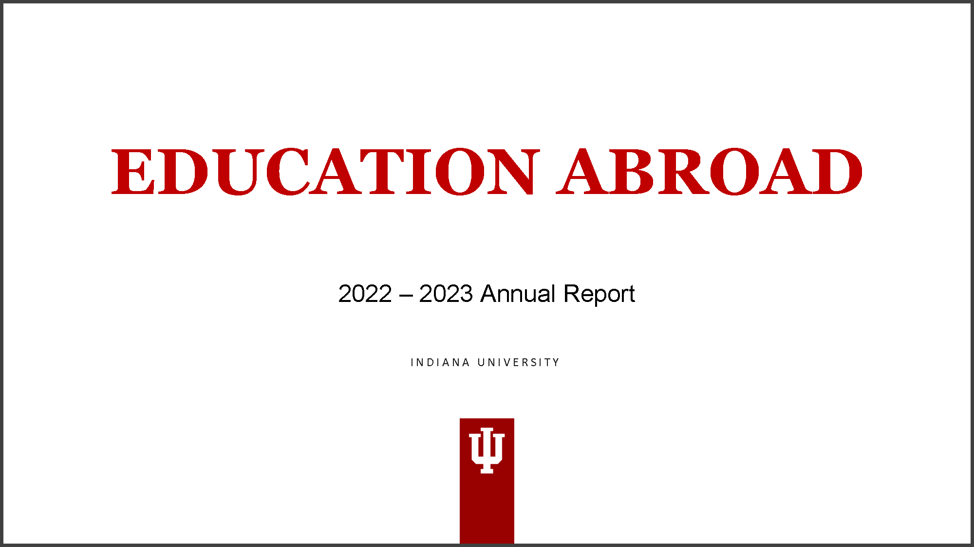 Our Annual Report contains comprehensive statistical information about education abroad activities at Indiana University.Students: If you are working on class projects or IDS articles, please submit questions by e-mail to edabroad@iu.edu at least one week prior to the due date. We will respond as soon as possible.